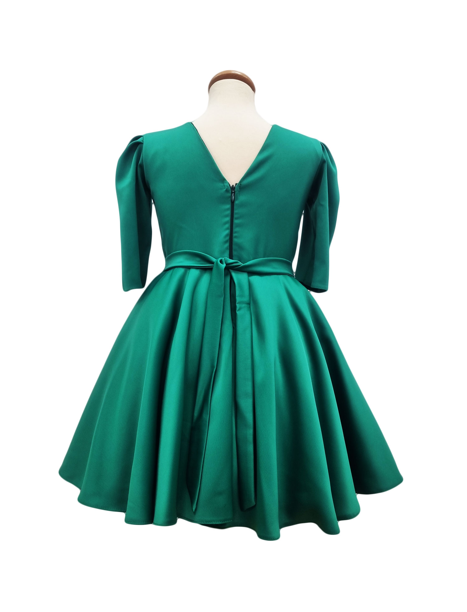 Rochie Eleganta Fetite, model Iris Elegance, culoare verde. Este confectionata din tafta, tiul si satin. Aceasta rochie casual-eleganta pentru fetite este perfecta pentru a fi tinuta lor preferata din garderoba. Cu o culoare verde stralucitoare si un design trendy, aceasta rochie va transforma orice tinuta intr-una eleganta si stylish. Are maneca 3/4. Se incheie cu fermoar in partea din spate. Pentru o potrivire perfecta se leaga cu cordon. Materialul de calitate superioara si croiala impecabila fac din aceasta rochie alegerea ideala pentru evenimente speciale sau chiar pentru o zi obisnuita. Rochie Eleganta Fetite, model Iris Elegance, culoare verde, cu siguranta va atrage privirile si va aduce un plus de stil oricarei mici fashioniste.