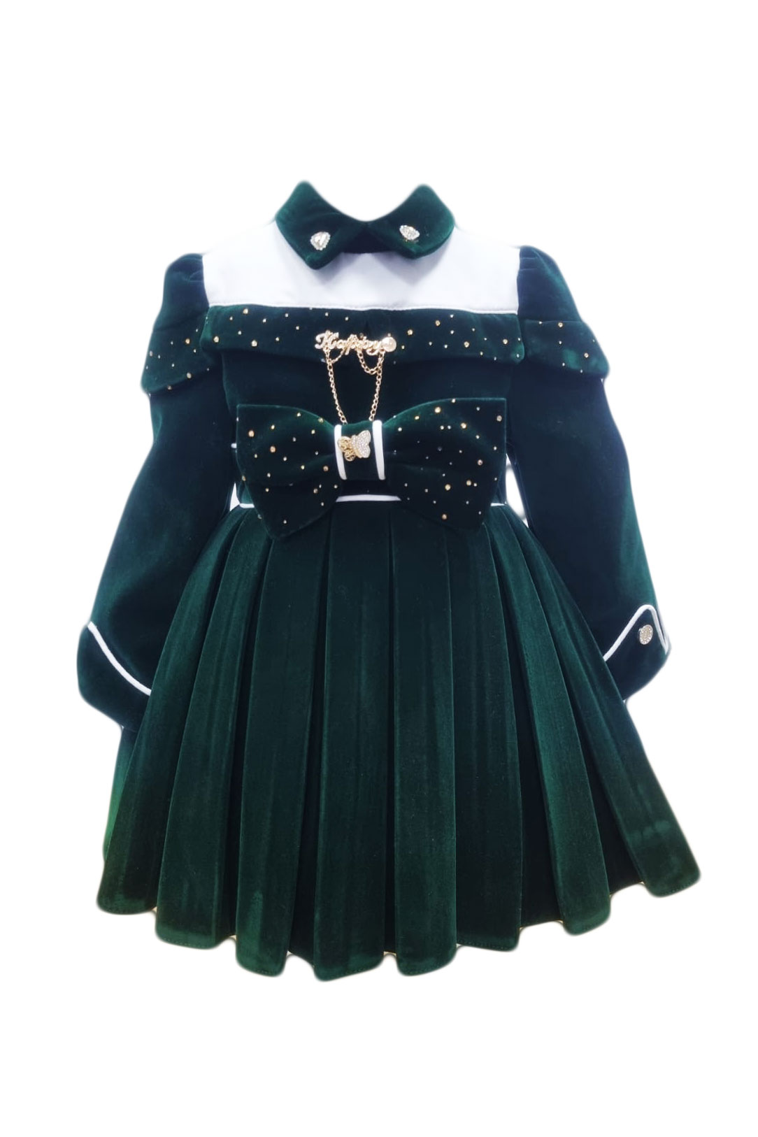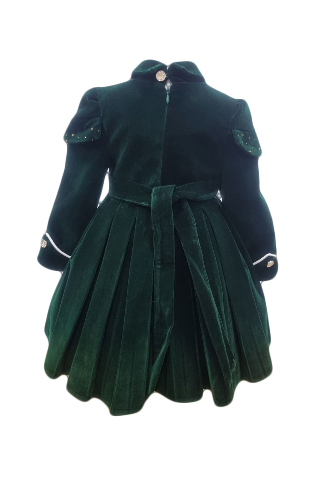 Rochita eleganta fetite pentru sarbatorile de iarna, culoare verde. Este confectionata din catifea. Aceasta rochie eleganta pentru fetite este perfecta pentru a fi tinuta lor preferata din garderoba. Cu o culoare verde stralucitoare si un design trendy, aceasta rochie va transforma orice tinuta intr-una eleganta si stylish. Are maneca lunga. Se incheie cu fermoar in partea din spate. Pentru o potrivire perfecta se leaga cu cordon. Materialul de calitate superioara si croiala impecabila fac din aceasta rochie alegerea ideala pentru evenimente speciale sau chiar pentru Craciun si Revelion. Rochita eleganta fetite pentru sarbatorile de iarna, culoare verde, cu siguranta va atrage privirile si va aduce un plus de stil oricarei mici fashioniste.