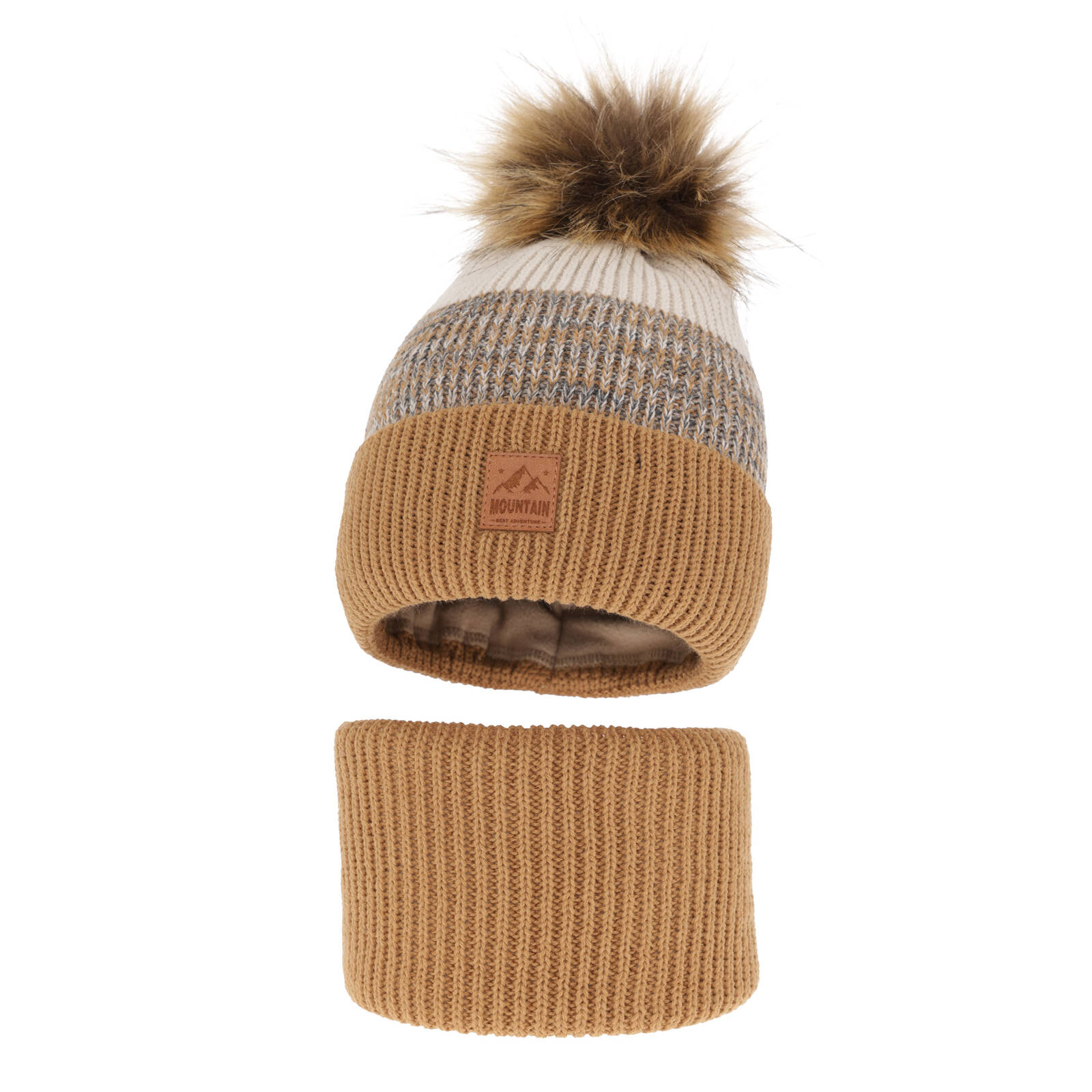 Un avantaj suplimentar al setului nostru este utilizarea pompomilor din blană ecologică, care nu sunt doar prietenoase cu mediul, dar adaugă și un farmec și originalitate. O insignă interesantă plasată pe căciulă nu este doar un element decorativ, ci subliniază și caracterul unic al setului. Punctul în dungi, aplicat pe ambele elemente ale setului, nu doar că arată estetic, dar și crește flexibilitatea materialului, permițând căciulii și fularului să se potrivească perfect formei capului și gâtului, asigurând o reținere optimă a căldurii.