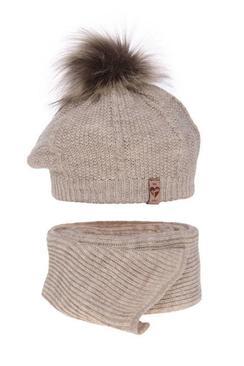 Set de iarna pentru fete, bereta și fular crem Elif.